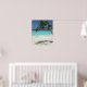 Poster with a beautiful sunny photograph. Turquoise tropical blue ocean waters, with a white sandy beach. A solo tropical tree provides a nice place to relax and enjoy this scenic idyllic spot.