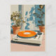 This vibrant artwork features a retro turntable playing a bright orange vinyl record, set in a sunlit room with potted plants casting soft shadows. The warm tones and relaxed atmosphere capture the perfect blend of music, sunshine, and modern aesthetic. Ideal for music lovers, vinyl collectors, and fans of stylish home-inspired art on apparel and accessories.