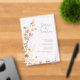 This chic wedding suite with it's warm sunny colour palette, handwritten script font and delicate wildflower arrangements has a timeless and sophisticated look that will impress your guests and help make your special day unforgettable. The striking acrylic wedding invitation, shown here on white with airy wildflower borders on a transparent background, provides a template to easily add your event details. Search ID1023 to see all the products in this wedding suite.