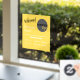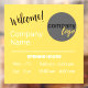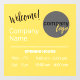 An eye-catching and sunny yellow design for small business. This window or door decal cheerily greets customers and clients, with a placeholder company logo, and important information about the opening hours for the company.