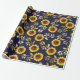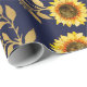 Sunny Yellow Gold Navy Sunflowers Leaves Pattern Wrapping Paper