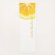 Sunny yellow cut lemon fruit on a white backdrop, with a handwriting calligraphy style name or other custom text, perhaps a motivational phrase. This cute pattern is eye-catching with the yellow and white colours, but also unique and functional with the personalisation. The Mediterranean lemon has been cut and the image is of a slice with dark yellow almost orange segments visible. The script text is in the same cheerful and bright deep yellow colour. The reverse is also a bright happy lemon yellow colour.