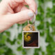 Sunrise Floral Red Abstract Art Small Premium Square Keychain