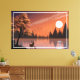 Sunrise Landscape with Lake and Deers-51207 Canvas Print