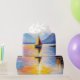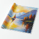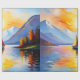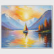 Beautiful oil painting of Sunrise over a lake and snow capped mountains
