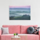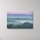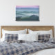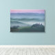 Canvas landscape print of a foggy sunrise with a pink sky and mist between the Tuscan hills over agriturismo podere il Belvedere farmhouse in the Valdorcia (Orcia Valley) between Pienza and San Quirico in Tuscany, Italy.