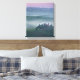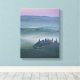 Vertical canvas landscape print of a foggy sunrise with a pink sky and mist between the Tuscan hills over agriturismo podere il Belvedere farmhouse in the Valdorcia (Orcia Valley) between Pienza and San Quirico in Tuscany, Italy.