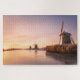 Sunrise over frozen river with windmills and reeds jigsaw puzzle