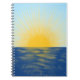 This vibrant graphic design features a glowing sun in radiant shades of yellow rising above the blue ocean, where broken waves reflect the light in a dynamic, imperfectly beautiful way. The simple geometric shapes and curves create a modern yet deeply meaningful image of morning at the beach, symbolising hope, renewal, and the promise of new beginnings.