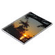Photograph of a Palm tree, tree branches and the ocean during a sunrise, printed on a Notebook. -- Sunrise photographed in SW Florida.