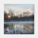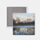 This magnet captures a moment out of time. It was a very cold early morning in upstate New York. The pond was partially frozen. Snow was clinging to the weeds and brush. The sky was a lovely palette of blue, pink, gold and white. The water reflected all this beauty in a perfect mirror image. And the sun rose blazing through the trees to illuminate the magic!