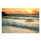 The morning sun rises above the horizons clouds and illuminates the emerald green waters of the Caribbean Sea, in Tulum, Mexico
