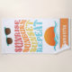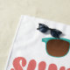 This fun towel displays the anthem of summer with colours of red, orange, yellow and aqua. The design also features sunglasses and a sun setting over water. Perfect for pool, lake, ocean, or anywhere you have summer fun. Personalise it with your name or initials and never lose your towel again.