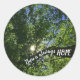 This inspirational and positive round sticker features a photo of the sun slowly rising into the sky as seen through tree branches. A long and strong branch supports the light and dark leaves that dot the blue sky as a hint of the bright sun is seen. Along the strong thick tree branch is written "There is always hope" in white font and may be customised if you desire.