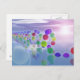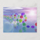 A 3D science fiction seascape created in Vue, depicting a light pink and lavender sunset behind a structure of multi-coloured spheres like giant atoms spiralling into a pale blue sea.
