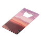 An abstract art design of sunset in pink, lilac, black, red and peach colours.