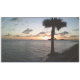 The tranquil scene of a sun setting across the calm ocean paired with soft swaying palm trees creates an inviting atmosphere, perfect for transforming any space into a peaceful retreat where you can unwind and relax.