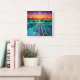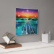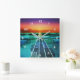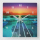 Sunset Beach Bass Guitar Music Wall Clock. A surrealist scene with a bass guitar stretching out over the ocean into the sunset. A great gift for your favourite bass player, musician or music lover.