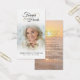 Keep the memory of a loved one close with this custom image personalized prayer card featuring a cherished photo, the sentiment FOREVER IN OUR HEARTS in an elegant calligraphy script typography design, name and dates on the front and an editable heartfelt message on the back overlaid on a beach sunset photo or change to an image that represents your loved one best. With its simple yet elegant classic design and modern script typography, it makes a meaningful keepsake to share at a funeral, memorial service or Celebration of Life and offers comfort and a lasting tribute for family and friends. Its small and portable size of 3.5x2" (wallet-sized) makes it convenient for loved ones to carry it with them as a reminder of your loved one’s life and spirit. Personalization makes each card unique.