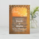 A beautiful beach at sunset is framed by rustic wood with the reflection of the sunset on it. String lights at the top provide an added glow. Brush script typography announces Save the Date. The upcoming wedding date details can easily be personalised.