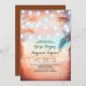 Absolutely romantic elegant and unique beach rehearsal dinner invitation with hanging string of lights on the palm trees. Tropical and modern beach rehearsal dinner invites with coral seaside sunset. Perfect for destination island night before wedding too.