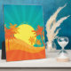 With a design of a retro tropical beach at sunset with palm trees. This surf design is in colours of red, orange and yellow and brings to mind a hot tropical beach resort in the Summer time. For lovers of sun, surf and sand and tropical sunsets..