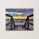 Sunset Beach View from Rustic Wood Deck Jigsaw Puzzle
