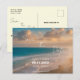Capture the essence of coastal charm and the excitement of your special day with this stunning postcard. The design features a breathtaking beachscape, where azure waves meet the soft sand, creating a picturesque backdrop that sets the stage for a truly unforgettable celebration of love.