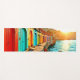 Step into a vibrant coastal dream where a dazzling boardwalk guides you towards the shimmering sea. This AI-crafted masterpiece, meticulously enhanced by a skilled artist, captures the breathtaking beauty of a sun-kissed harbour. Each brightly painted boathouse stands as a beacon of joy, reflecting the warm, inviting glow of the setting sun. Lose yourself in this picturesque scene, where tranquil waters and brilliant colours converge to create a moment of serene bliss and creative wonder.
