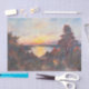 This design features a painting by the Romanian Post-Impressionist artist Kimon Loghi (1871–1952). It shows a beautiful bright sunset in the sky above a coastal landscape. The dying light of the sun is reflected on the water of an inland river. There are trees and foliage in the foreground of the image. Strips of land form a peninsula as the river meets the sea.