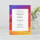 This modern wedding invitation has sunset colours from purple, through, reds and yellow in a gradient style wave design. The text is customisable for your own event.