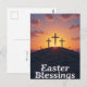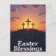 Capture the profound beauty of Easter with this card showcasing three crosses silhouetted against a glowing sunset. Perfect for sending heartfelt blessings and sharing the true meaning of Easter. This card also serves as a beautiful reminder of hope and renewal during the season.
