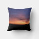 A bold sunset scene with blue/orange sky and black silhouette landscape. This throw pillow / cushion has the same photo design on the reverse side.