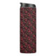 Add a little cheer to your day with a whimsical, hand-painted watercolor floral patterned tumbler, featuring playful orange, red and yellow daisy blooms dancing on a dark chocolate brown background.
