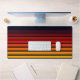 You will find all the colours of a spectacular sunset in your room. Multicolor striped design inspired by a sunset. Minimalist design in dark blue, and different shades of pink, red, orange, and yellow.