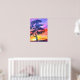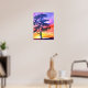 Beautiful colourful landscape sunset dreaming painting by artist Sacha Grossel of a red yellow and purple sunset landscape in the outback with a tree shadow in the foreground. Colourful original art in watercolor style.