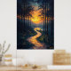 Immerse yourself in the tranquillity of nature with this stunning impressionist art print. Featuring a winding forest path illuminated by the golden hues of sunset and reflections on the water. Perfect for adding warmth and serenity to your wall décor.