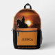 Sunset Girl Who Love Horses Personalised Name, sunset printed backpack with optional personalisation. and space to add your kid's name. The perfect gift for girls who love horses, for your child to take to school or preschool, high school, sports, or work. Customise the text field for a great bag for back-to-school.
