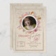 This lovely sand-tone, grunge background features a round photo window trimmed with watercolor feathers, flowers and foliage in shades of pink, berry, orange and green.