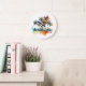 Keep track of time with a vibrant touch of tropical serenity with this stylish wall clock, showcasing the captivating "Sunset Grove" watercolor design. Palm trees with rich, warm hues of orange, brown, and green stand tall, their fronds rendered with fluid artistry and subtle splatters for a dynamic feel. Perfect for adding unique, natural elegance to any room, this clock is a beautiful and functional piece of art.