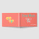 Joyful bright coral to personalise with the bride and groom's names and date of wedding in elegant white script. Back has pretty hearts with sunset shades in golden yellow to pink hearts to personalise with the bride and groom's monogrammed initials. Our Love Story is written on spine of book. Have the wedding guests sign your wedding guest book as a lovely keepsake book. Original Artwork esign © TamiraZDesigns.