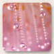 A 3D macro shot of a crystal chandelier. Myriads of strands of sparkling glass beads catch the light to create a lovely bokeh in the background. The blurred glass drops are reflected clearly in the sharply focused crystal balls in the foreground. The gold branches of the candelabra and soft pink atmosphere and lights give a sunset glow to the piece. Created in Vue.