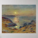 “Sunset in Douarnenez” is a stunning landscape painting by Pierre-Auguste Renoir that captures the serene beauty of a sunset over the Douarnenez Bay in Brittany, France. The painting features a vibrant sky filled with hues of orange, pink, and purple as the sun dips below the horizon. The tranquil waters reflect these colours, creating a harmonious blend between sky and sea. Silhouettes of boats and distant hills add depth to the composition, while the soft brushwork conveys an impressionistic quality that emphasises the fleeting nature of the moment. Overall, this piece exemplifies Renoir’s ability to evoke emotion through colour and light, showcasing the enchanting charm of the coastal landscape.