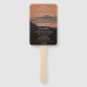 Easy to use sunset themed funeral hand fan program template, with editable photo and text.