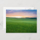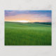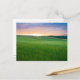 Postcard of a landscape with the rolling fields with green wheats at sunset in the Val d'Orcia valley in Tuscany, Italy.