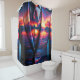 This shower curtain has a sunset on it.