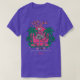 I give wanted to give this a 4 instead of a 5 because these Basic DARK T0shirts run unexpectedly SLIM or Narrow. Which is great if you do not have a potbelly, but I have a paunch. It isn't the shirt's fault that I've got a beer belly. The design and shirt itself is a quality cotton shirt. The color is more of a deep purple, but still a very pretty color. The Basic DARK T-shirts run a bit SLIMMER than the Basic Ts. The neck is a fraction narrower (or seems to be narrower) also. I'm a paunchy middle-aged woman and my neck is 12 inches (31cm) thick and the neckline fell about the same as in the photo of the man, and I had the desire to tug it a bit. So if you're a thick necked man or like loose shirts, be aware these are slimmer shirts. Once I get rid of my lockdown paunch it'll look great. The shirt washed well in cold water with no apparent bleeding. We don't have a dryer, so it hung dry. Did not shrink. Love the colors and the design. The design looks smaller on my shirt than it does on the model on-line. But still, it looks good on the shirt. The printing looks as it does on the model, just the size seems fractionally smaller. Washed garment in cold water, hung dry and design appeared unaffected.