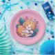 Anyone who loves cats will be enchanted with this cute cartoon kitty. Sleeping cat in a bed of foliage and flowers is colourful in bright pastels. The pink background colour may be changed to any colour desired within Zazzle's design tool. Add any text while within the tool, as well.