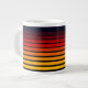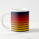 Multicolor striped design inspired by a sunset. Minimalist design in dark blue, and different shades of pink, red, orange, and yellow.