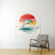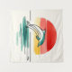 This minimalist piece features a stylised dolphin silhouette leaping against an abstract backdrop that evokes a serene sunset over the ocean. The artwork uses bold lines and a warm palette of red, orange, and yellow, contrasted with the cool tones of blue and green to depict the sea. This modern, simple elegance captures the essence of nature’s beauty through a contemporary lens. It's a serene yet vibrant depiction that would complement any modern decor, particularly for those who are drawn to nautical themes and appreciate the grace of marine life juxtaposed with the tranquillity of sunset colours.